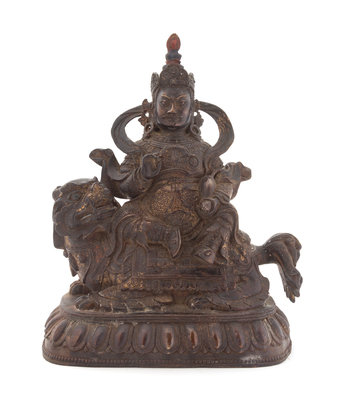 A Large Sino-Tibetan Parcel-Gilt Bronze Figure of Bodhisattva Kubera