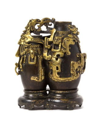 A Gilt Decorated Bronze Double Vase