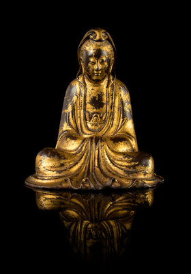 A Gilt Lacquered Wood Figure of Guanyin