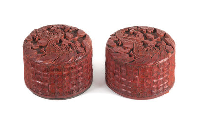 A Pair of Cinnabar Lacquer Circular Boxes and Covers