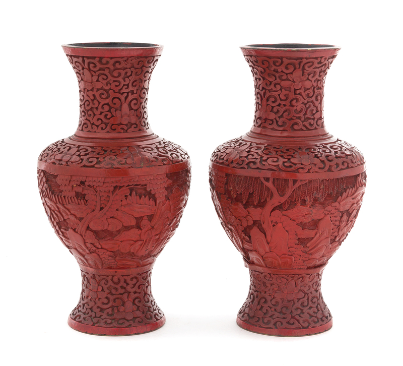 A Pair of Cinnabar Lacquer Vases