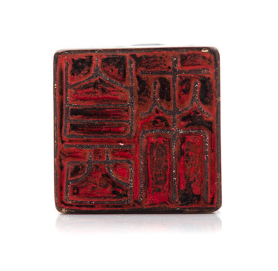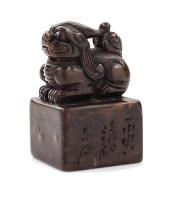 of square form, surmounted by a finial in the form of a seated mythical beast, tianlu, carved to one side reading bing yin qing mi han ? the seal face with three-characters reading zi xi lai.