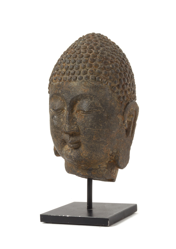 A Carved Grey Stone Head of Buddha