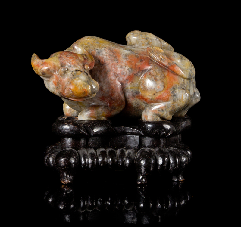 A Carved Hardstone Figure of a Buffalo