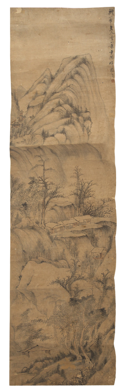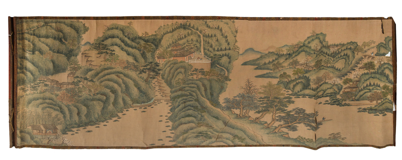Three Ink and Color Paintings on Paper Scrolls