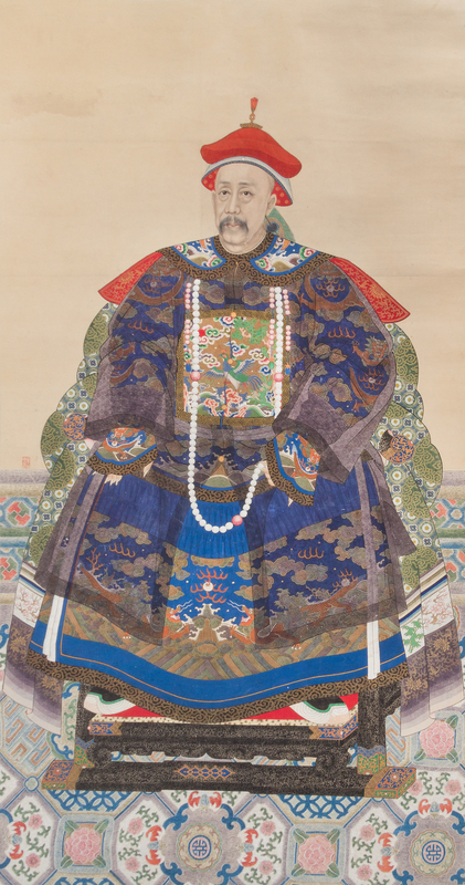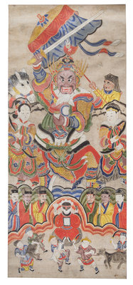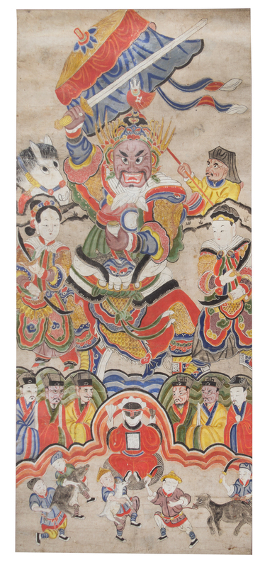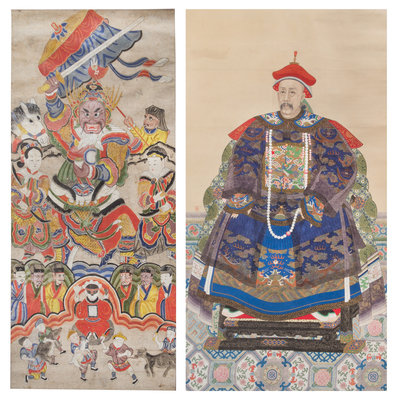 the first depicting various immortals, the second an ancestor portrait showing a seated official.