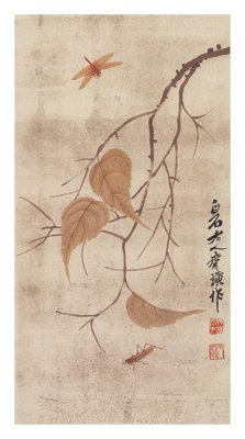 signed Baishi laoren Qi Huang, two artists' seals Qi Huang lao shou and qi jiu shuai weng