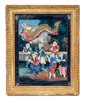 A Chinese Export Reverse Painted Glass Panel