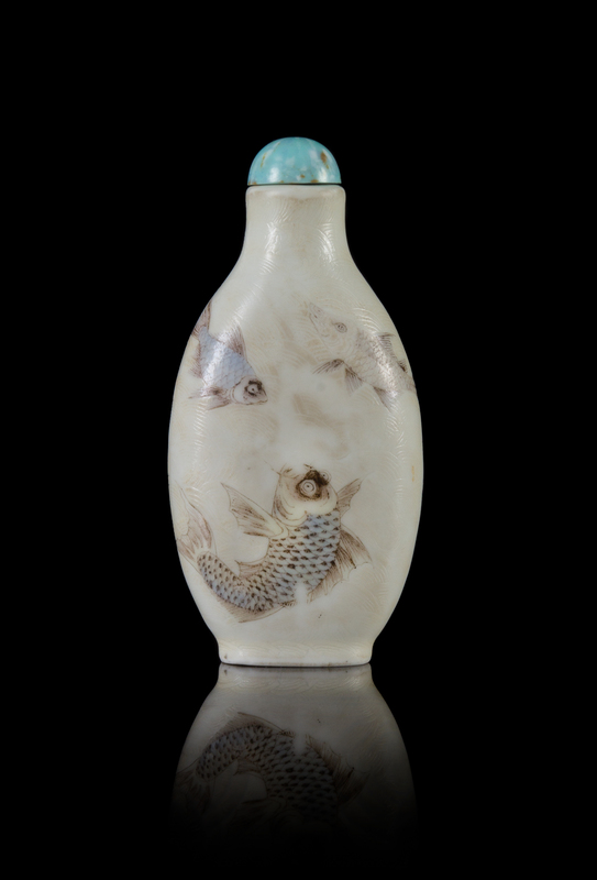 An Enameled and Incised Porcelain Snuff Bottle