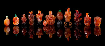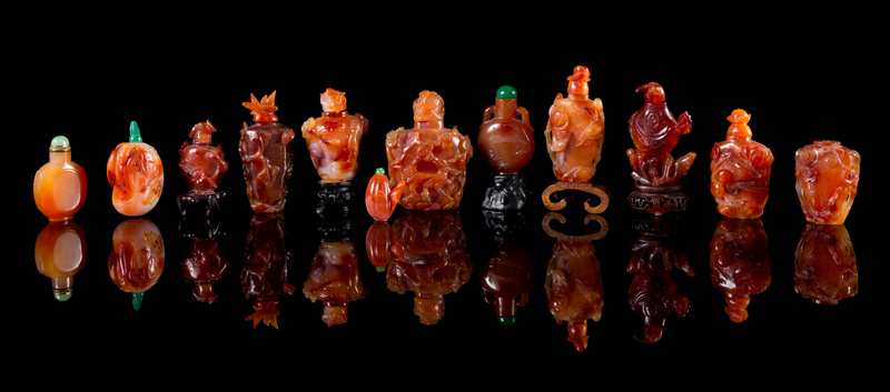 Twelve Carnelian Agate Snuff Bottles