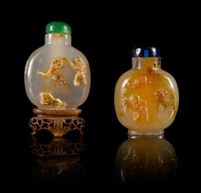 Two Carved Agate Snuff Bottles