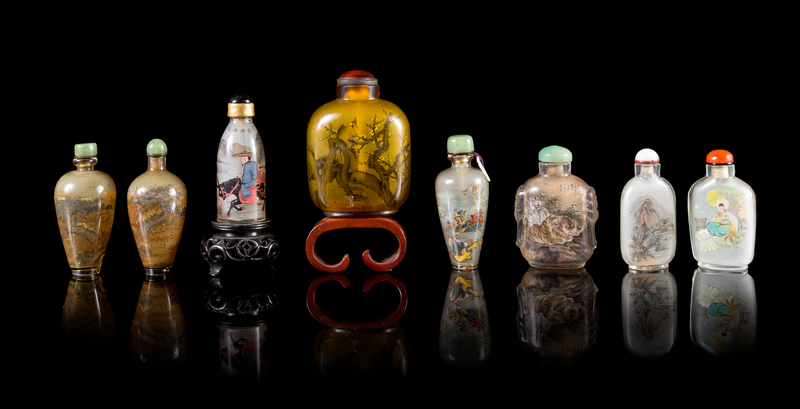 comprising four of flattened rectangular form, three of baluster form, and one of cylindrical form.