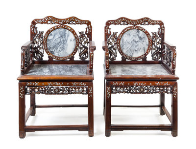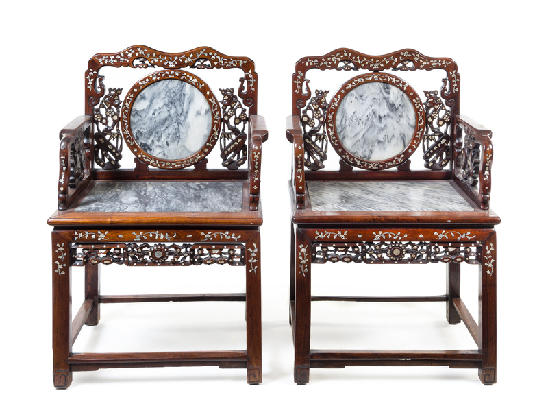 A Pair of Chinese Export Mother-of-Pearl Inlaid Hongmu Chairs