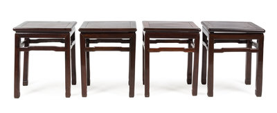 each with a square top over simply carved aprons, raised on square legs.