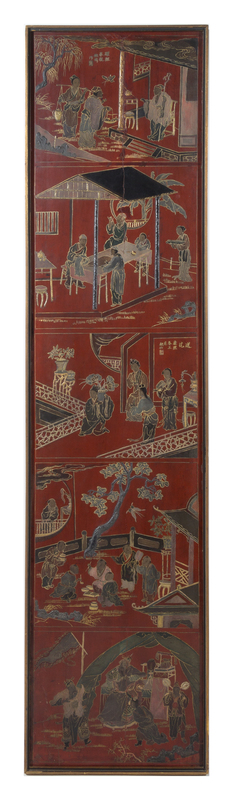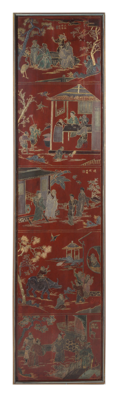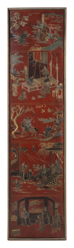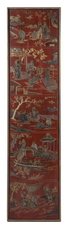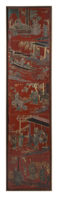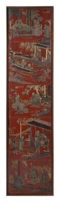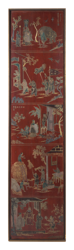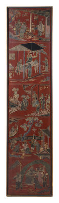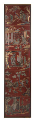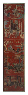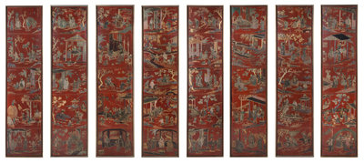 A Ten-Panel Carved Red Lacquered Floor Screen