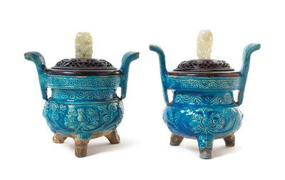 A Pair of Turquoise Glazed Pottery Censers
