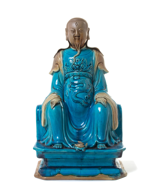 A Turquoise Glazed Biscuit Figure of a Daoist Immortal, Zhenwu
