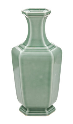 A Celadon Glazed Porcelain Hexagonal Vase