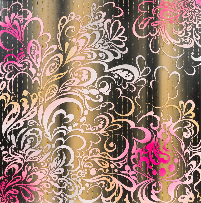 acrylic, resin and rhinestones on panel