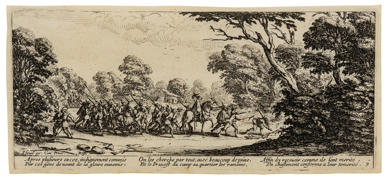 Discovery of the Criminal Soldiers (pl. 9 from Les Grandes Miseres de la guerre), 1633