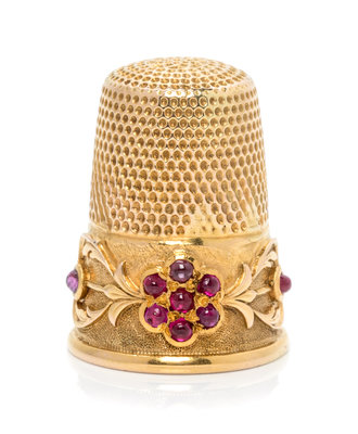 A Continental Yellow Gold and Ruby Thimble