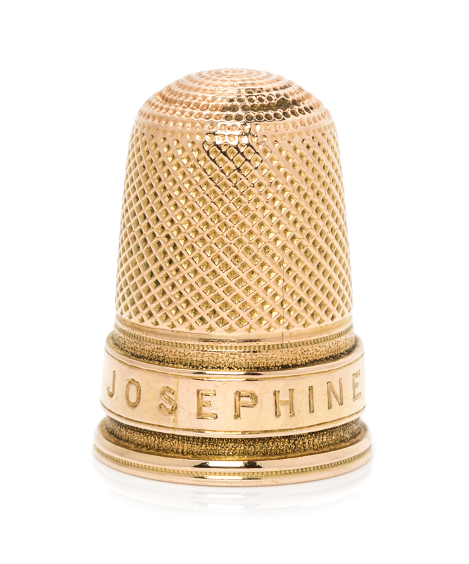 the knurled top and diapered body above a band in the form of a belt, engraved Josephine on the strap.