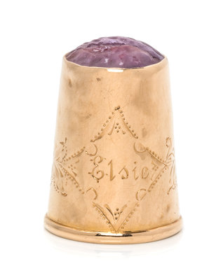A Swedish 18-Karat Yellow Gold and Hardstone Thimble