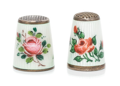 Two Norwegian Silver and Guilloche Enamel Thimbles