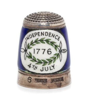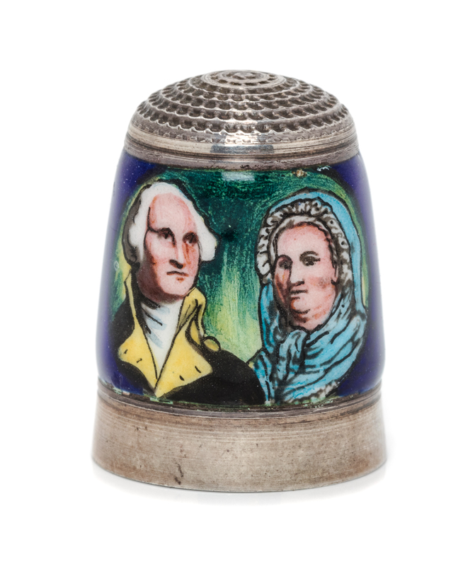 the knurled top above an enamel band depicting George and Martha Washington, the other side with a commemoration of July 4, 1776.