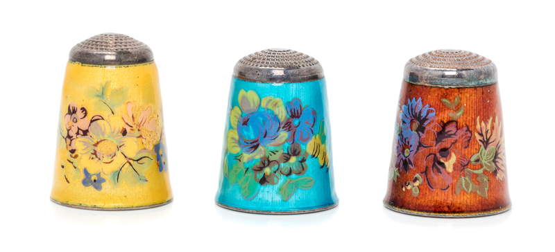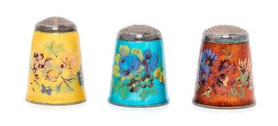each having a knurled top above an enamel body with polychrome floral and foliate decoration.