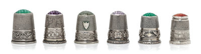 Six Silver and Hardstone Inset Thimbles