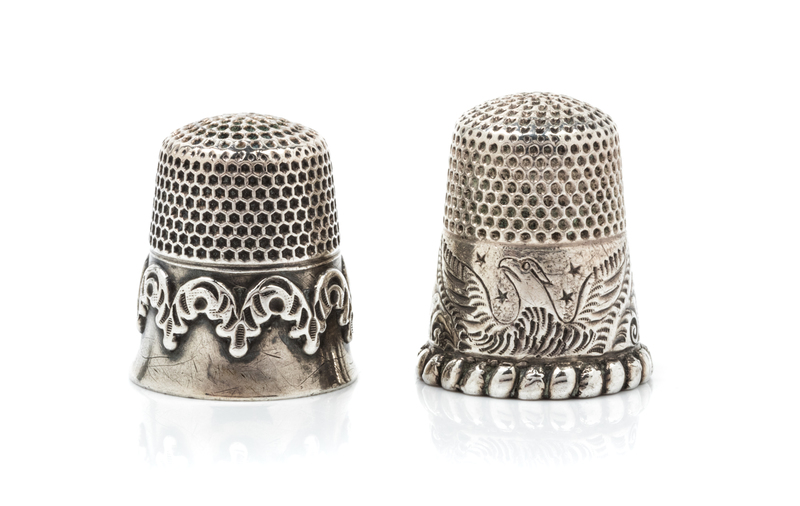 comprising an example with a dimpled top and body above a band chased to show a spreadwing eagle and a gadroon rim, the other example with repeating foliate decoration.