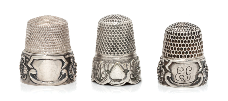 A Pair of American Silver Grapevine Thimbles