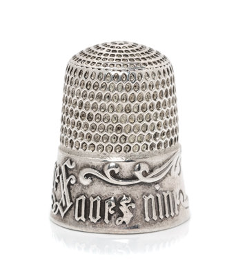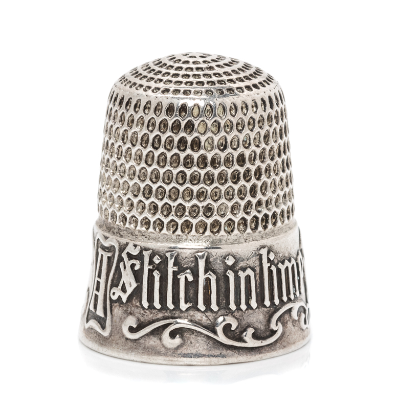 the based marked A Stitch in Time Saves Nine with a vacant cartouche framed by C-scrolls.