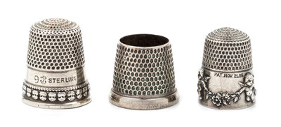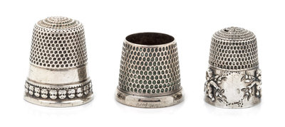 comprising an example with a rim worked to show putti masks, Goldsmith Stear & Co., New York, NY; an example worked to show cherubs among floral swags, Simons Bros., Philadelphia, PA; together with an unmarked example.