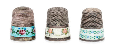 A Group of Three American Silver and Enamel Thimbles