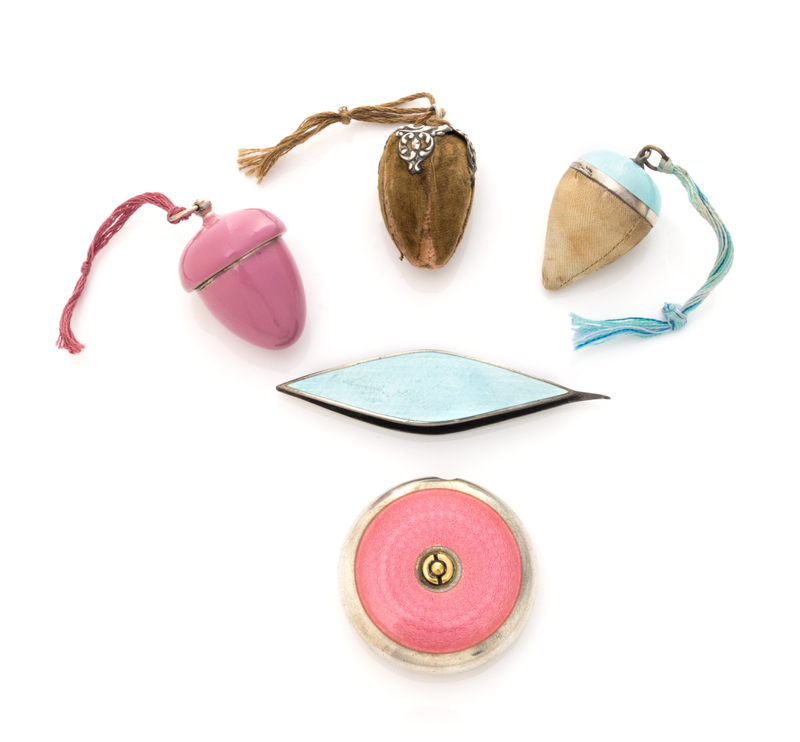 comprising a pin cushion and thread winder, together with a tatting shuttle, tape measure and a thimble holder.