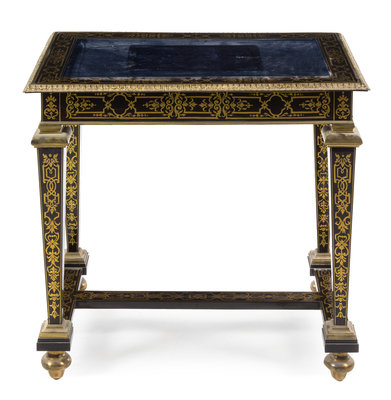 A Louis XVI Gilt Bronze Mounted Boulle Marquetry Center Table