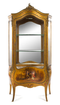 A Louis XV Style Gilt Bronze Mounted Vernis Martin Vitrine