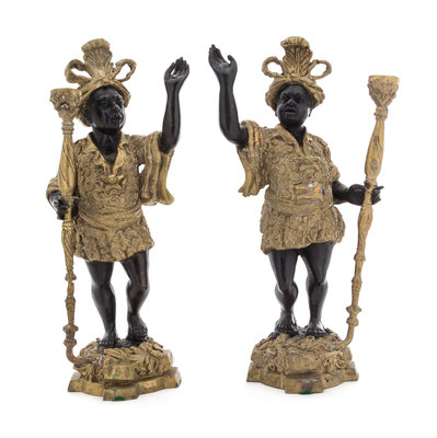 each in the form of a standing blackamoor figure holding a torch.