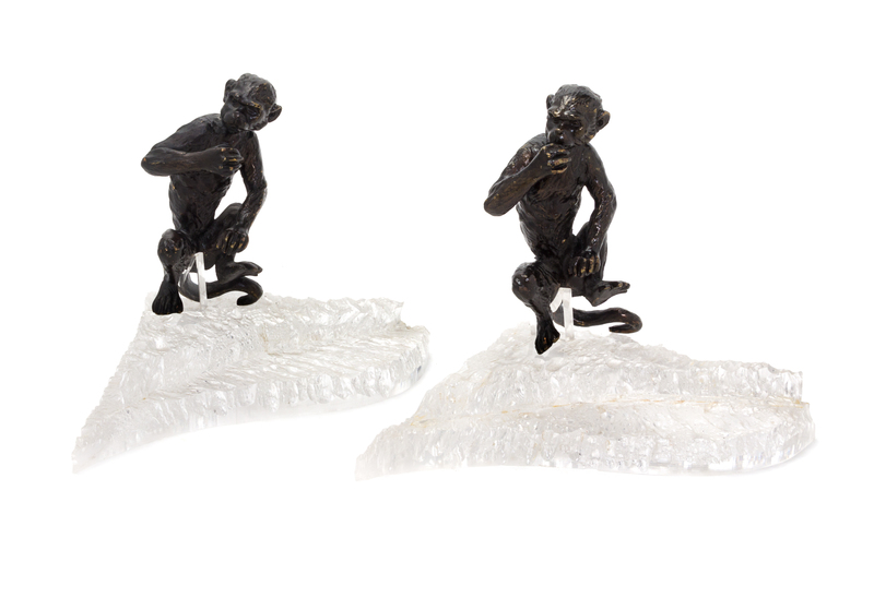 A Pair of Continental Bronze Figures of Monkeys