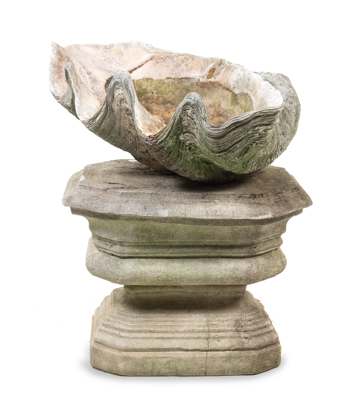 A Cast Stone Model of a Giant Clam Shell and an Associated Pedestal