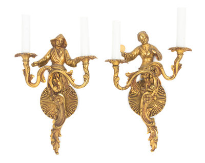 A Pair of Gilt Bronze Two-Light Figural Sconces