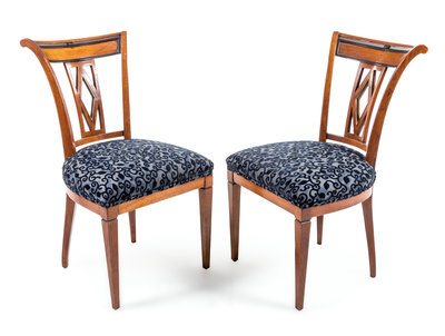 A Pair of Biedermeier Parcel Ebonized Side Chairs