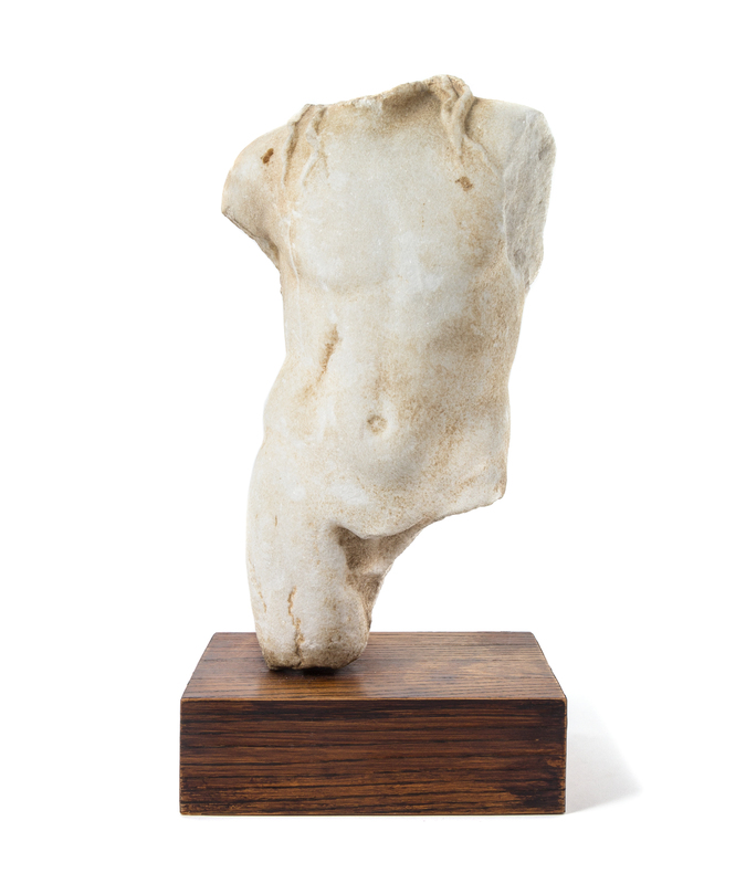 perhaps depicting Dionysus or Apollo, with long individual tresses falling on to his shoulders, depicted nude, standing with his weight falling into his right hip.