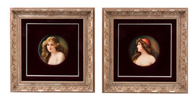 each of circular form depicting a maiden, one example signed Wagner and by K.P.M., set in later frames.