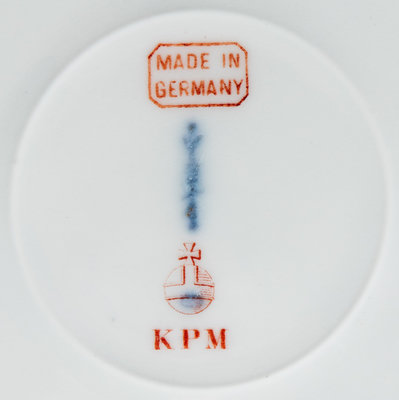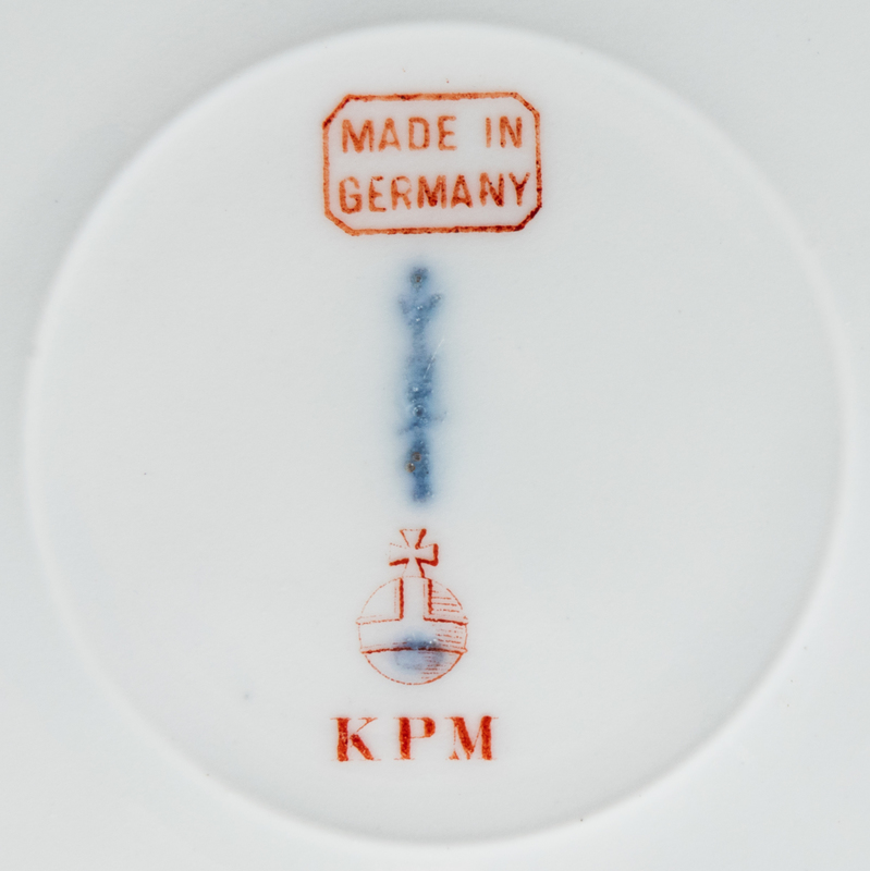 each decorated with polychrome floral decoration and gilt highlights, with K.P.M. scepter and orb marks to the underside.