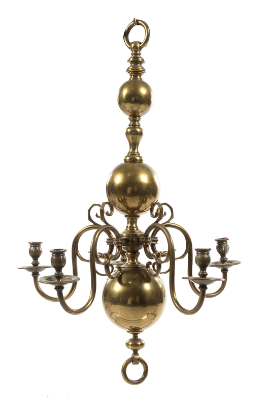 A Dutch Baroque Brass Five-Light Chandelier