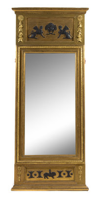 A Gustavian Neoclassical Style Parcel Ebonized Giltwood Mirror