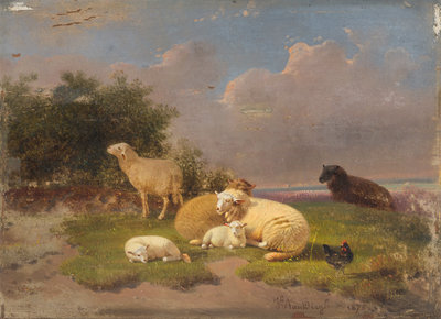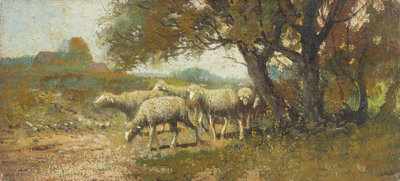 Landscape with Sheep and Fowl, 1875 and Landscape with Sheep (two works)
